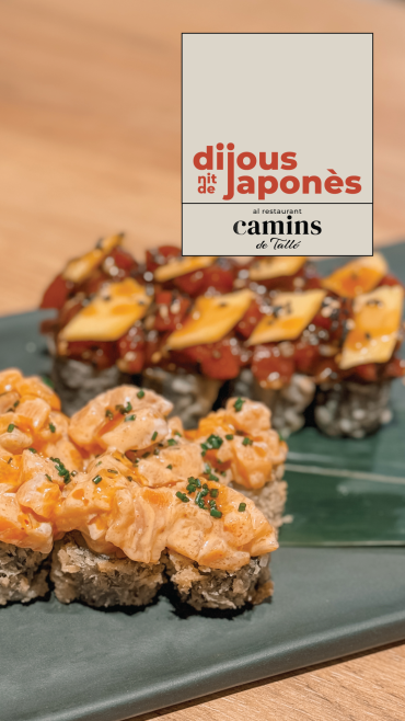– 1 sopar per a 2 persones amb vi inclòs al nostre restaurant Camins de Talló el “Dijous, nit de japonès”